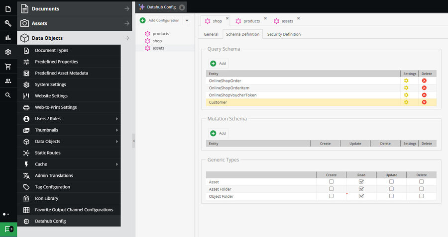 Data Hub plugin supports Queries and Mutation for Data Objects & Assets.